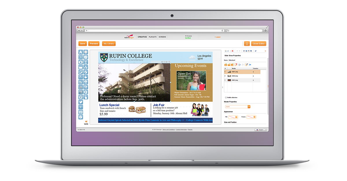 With NoviSign, die Erstellung und Verwaltung schöner Digital Signage ist einfach und macht Spaß!